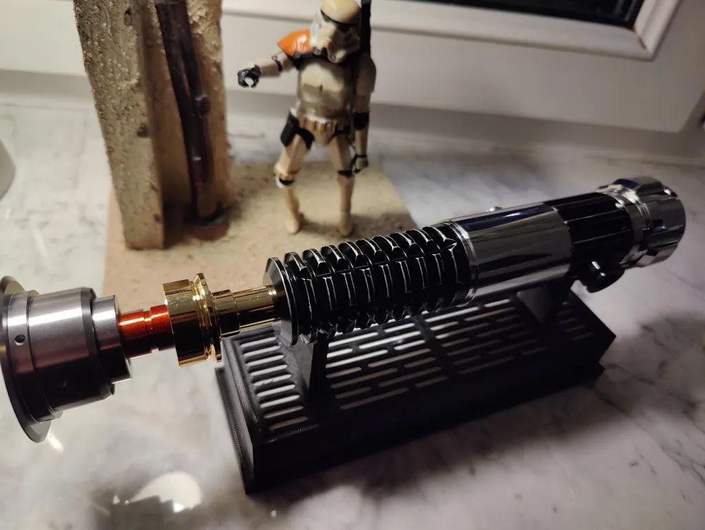Realistische Soundeffekte: 16 Soundfonts für authentische Lichtschwert-Geräusche, Charakterzitate und ikonische Musik; inklusive Lautstärkeregelung und Stummschaltmodus.